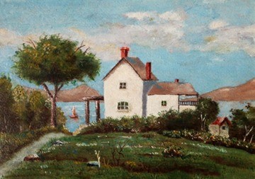 This painting by Burkhart may be the earliest example of his work. Painted in 1918 at the age of 13, Burkhart gave this painting to his cousin. He had no formal training, yet one can see the potential the young man had at an early age.