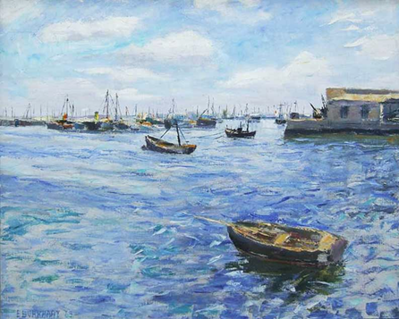 Emerson Burkhart was born near Kalida, Ohio in 1905. He graduated from Ohio Wesleyan University in 1927, studied at the Art Students League in New York City, and subsequently traveled to Provincetown, Massachusetts, where he took instruction from Charles Hawthorne. In 1931, he returned to the Midwest and taught at the Columbus, Ohio School of Art. He was an early member of the Ohio Art League. He moved to Cincinnati, Ohio for several years but had returned to Columbus for good by the mid-1930s.