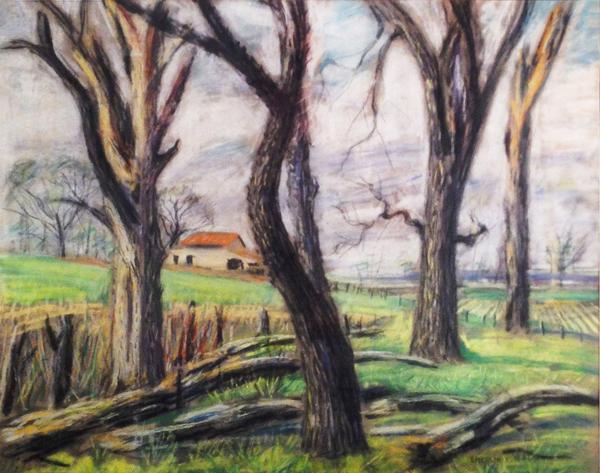 Pastel on paper under glass, 18 ½ x 22 in. Signed lower right, ‘Emerson Burkhart.’ Excellent condition.