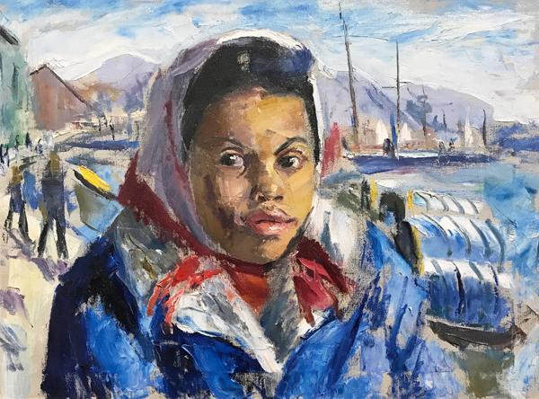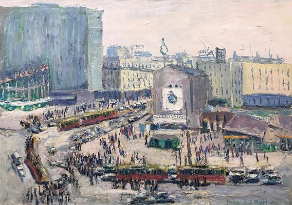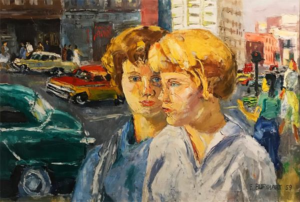 This work was painted in Boston prior to the departure of the faculty and students on the first ISA trip in 1959. Although the identities of the women are unknown, they may be students who participated in the first global journey. It may well be the painting noted as Street, Boston (number 113) in the Burkhart Retrospective Exhibition held at the Columbus Gallery of Fine Arts in 1970.