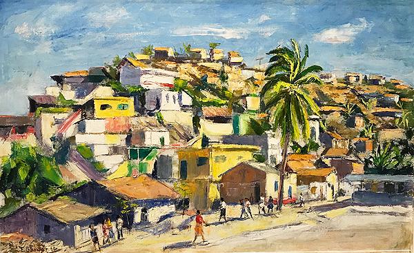 This large-scale painting exemplifies Burkhart’s ability to take a busy, colorful landscape and render it in a manner that is full of vitality and aesthetically pleasing. Some of his best ISA work was done during the trip in 1965. It was highly thought of by Karl Jaeger and he chose to include it in the Burkhart Retrospective Exhibition in 1970. It is noted as number 137 in the exhibition catalog and is reproduced with a half page color plate.