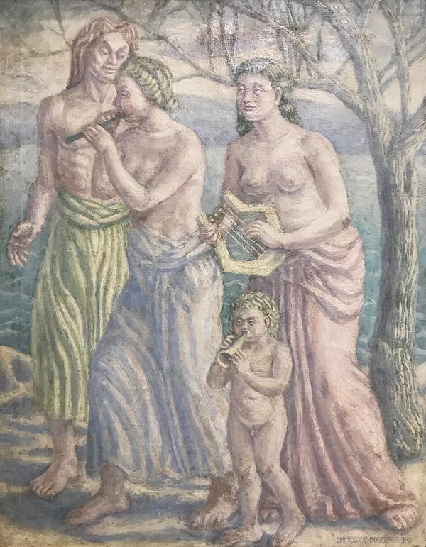 Oil on Masonite, 24 x 36 in. Signed lower right, ‘Emerson C. Burkhart’, Excellent condition.