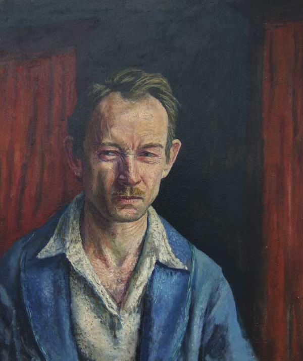Very rarely are early examples of Burkhart self-portraits available to the public. This pensive pose captures Burkhart as a robust 35-year-old man. Of the more than 400 self-portraits Burkhart painted over the course of his career, this is one of less than a handful to be exhibited publicly. This wonderful example of the artist was catalog entry #27 at the Burkhart Retrospective Exhibition at the Columbus Gallery of Fine Arts (now the Columbus Museum of Art), 1970. The work is in very good condition.