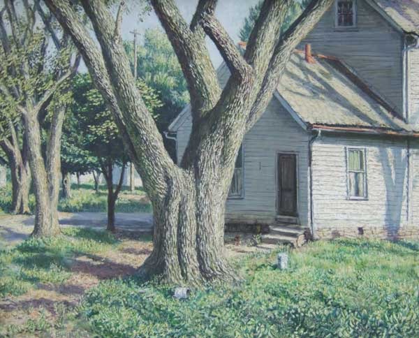 Burkhart has rendered a very comfortable and aesthetically pleasing country homestead likely painted within a short drive of his Columbus home. This painting is another great example of the quality of Burkhart’s landscapes executed during the prime of his career. Exhibited at the Emerson Burkhart Retrospective Exhibition, 1970, Columbus Gallery of Fine Arts (now the Columbus Museum of Art), catalog #67. Very good condition.